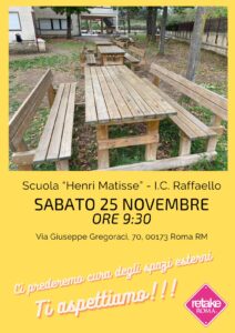 Scuola Primaria H. Matisse - IC Raffaello - Sabato 25 Novembre ore 9:30 - Ci prenderemo cura degli spazi esterni del plesso grazie ai volontari di Retake Roma